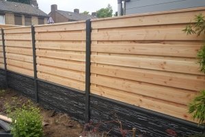Een hout beton tuinafscheiding is een combinatie van hout en beton. Omdat beton tegenwoordig een leven lang meegaat is het uitstekend geschikt als schuttingpaal. In combinatie met een betonplaat zal dit zorgen voor een stevige en stabiele combinatie. Het tuinscherm heeft geen contact met de aarde dit zal de levensduur aanzienlijk verlengen.