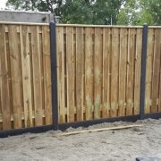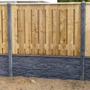 Schutting is afgewerkt met geïmpregneerde en betonnen afdekkap.