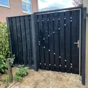 Zwarte 21 planks geschroefde tuinschermen 180×180 cm.